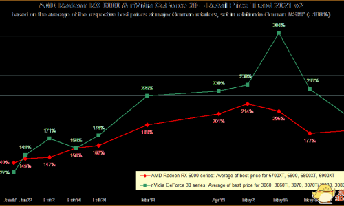 据 3DCenter 最新的统计,欧洲的英伟达 RTX 显卡价格大幅降低,由五月份的 304% 平均溢价降至了 191%。   根报告,虽然 AMD 显卡价格没有显著下降,但英伟达 RTX 显卡的定价发生了重大变化。平均而言,RTX 显卡仍然比建议零售价贵 91%,但目前已经回落了 113%。      上个月,英伟达将生产转向了“防挖矿”版显卡的生产,因此供货量一度不足,但现在,情况一切都好起来了。   不过,六月份的显卡价格不会再继续这样大幅下降了,主要是因为零售商以更高的价格订购了显卡,现在他们不愿意亏本出售。     报告还指出,本次降价也得益于中国对挖矿产业的禁止。前几日,全球最大的矿工聚集地四川省也开启清退虚拟货币挖矿项目,虚拟货币矿机被集体断电。