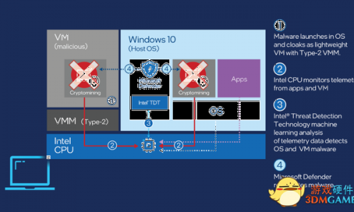 4月27日消息,Intel以及微软将联手开展一个新合作项目,帮助中小企预防网络安全问题,例如防止计算机被黑客用于挖矿等。 这次的新防护措施将会内建在微软Defender for Endpoint中,并且需要在第6代或者更新的Intel Pro或者Core处理器上才可以使用。具体来说,这项防护措施是利用了Intel的TDT,也就是Threat Detection Technology威胁检测技术,以机器学习的方式来探测系统上有没有挖矿活动。 在Intel的官方新闻稿中,Intel表示随着虚拟货币在成为主流的路上慢慢血前迈进,网络犯罪分子将会把他们的重心从勒索软件转移至挖矿劫持(Cyrptojacking)中。Intel称,2020年第4季的恶意挖矿软件攻击数量,比起第三季增长了53%。 挖矿劫持就和一般