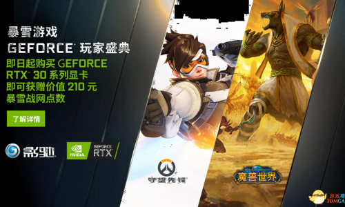 2020年9月17日- 2020年11月9日,NVIDIA将携手华硕启动“暴雪战网点数捆绑活动“,购买GEFORCE 新一代安培架构显卡, 可获赠价值210元人民币的暴雪游戏点数,玩家可以用于《魔兽世界》、《守望先锋》、《暗黑破坏神III》、《星际争霸II》、《星际争霸:重制版》、《风暴英雄》和《炉石传说》等多款游戏,享受各种角色服务以及购买虚拟道具! 只要在活动期间通过华硕品牌指定的零售渠道,购买华硕GEFORCE RTX 30系列显卡,您就有资格参加“暴雪战网点数捆绑活动”。 此次支持“暴雪战网点数捆绑活动”的产品为华硕GEFORCE RTX 30系列显卡,包括GeForce RTX? 3070、GeFo