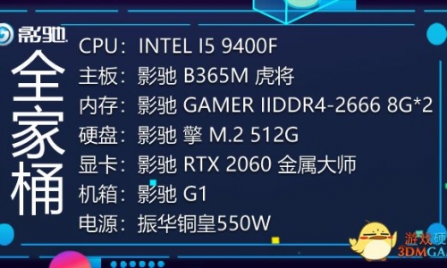每当我们饥肠辘辘的时候,一个外卖全家桶就是幸福的全部。每当我们面对繁杂的电脑各个配件型号、性能、兼容、温度、美观等等要素挑选的时候,吃着M记和K记全家桶是不是也味同嚼蜡?没事,这个时候,你一定需要一套来自影驰的全家桶套餐,各种档位搭配都兼顾稳定与性能,有实力又有颜值,还不赶紧跟我一起抱一套带回家慢慢品尝? 上期影驰全家桶有给大家推荐过4000元以下档位的全家桶套餐,这次就为大家带来更强大的全家桶推荐,我们先定个小目标:6000元以下套餐! 6000元以下套餐之——INTEL平台套餐推荐: 单从配置来看,6核6线程的I5-9400F,睿频到4.1GHz,搭配B365主板,加上16G DDR4内存,RTX 2060 显卡通杀3A大作和网游,还有M.2 512G SSD,主流应用