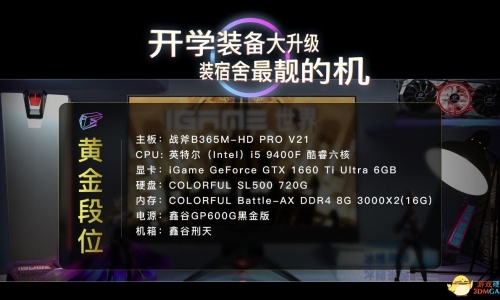欢乐的时光总是短暂的,暑假即将结束了,习惯了晚睡晚起的你,即将面对着晚睡早起是否做好了准备。提到大学时光你也许想到的是一场轰轰烈烈的爱情,也许是修不完的课程,但与室友兄弟们征战在游戏沙场一定是少不了的。 也许你已在打算告别自己的家用“旧电脑”,在线上商城订一套极具性价比又不失帅气的配置开启宿舍战争生涯,那么或许一块能够适合后续支持光线追踪新技术的显卡,更能陪伴你更久,玩得更爽。身为国内新生代高端定制硬件品牌iGame已为大家准备好这一切,快来看看开学季iGame为你们准备了什么惊喜吧!我们一共给大家准备了三套万能配置推荐给大家,总有一个段位适合你! 黄金段位 黄金段位显卡采用的是Ultra依然贯彻着自己身为最亲民选择的特性,使用最新TU116显示核心的它,可通过位于