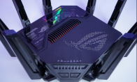 在路由器市场华硕可谓是独占鳌头,除了一些常用的基本功能外,还内置了网易UU加速器,AIMesh等功能,也让大众对路由器有了全新的概念。在半年以前我们曾为大家介绍过华硕八爪鱼GT-AX11000 Pro路由器,当时看来已经觉得是顶配了。而现在ROG又带来了惊喜:八爪鱼7,三频速率可达惊人的13000M。那么这一款的性能到底如何就让我们来看一下吧。 外观:在整体的形状上ROG八爪鱼7路由器还是继承着GT-AX11000 Pro路由器的外形,同样的巨大,同样的黑色主色调,同样的天线布局。不过在左侧做了ROG浮雕的半透明亚克力顶盖,透过顶盖我们可以看到内部的电路、芯片等等结构。 在亚克力顶盖的下方是ROG SLASH风格散热格,外露的散热鳍片和精心设计的气流动线,配合内置多层铝制散热片并