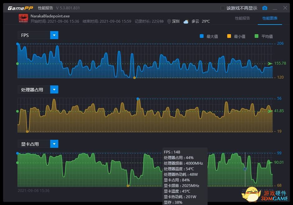 在经过20分钟的实际测试之后,测试成绩如下,最高与最低帧暂且不提,20分钟游戏的平均帧数为125,算是摸了144hz电竞标准的屁股。