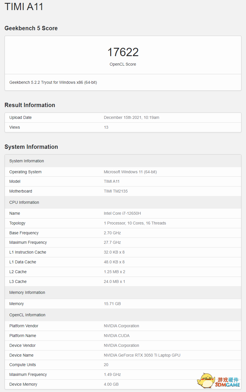 今日有多款“TIMI”神秘新品出现在了 Geekbench 上,据称这将会是小米新款笔记本电脑。