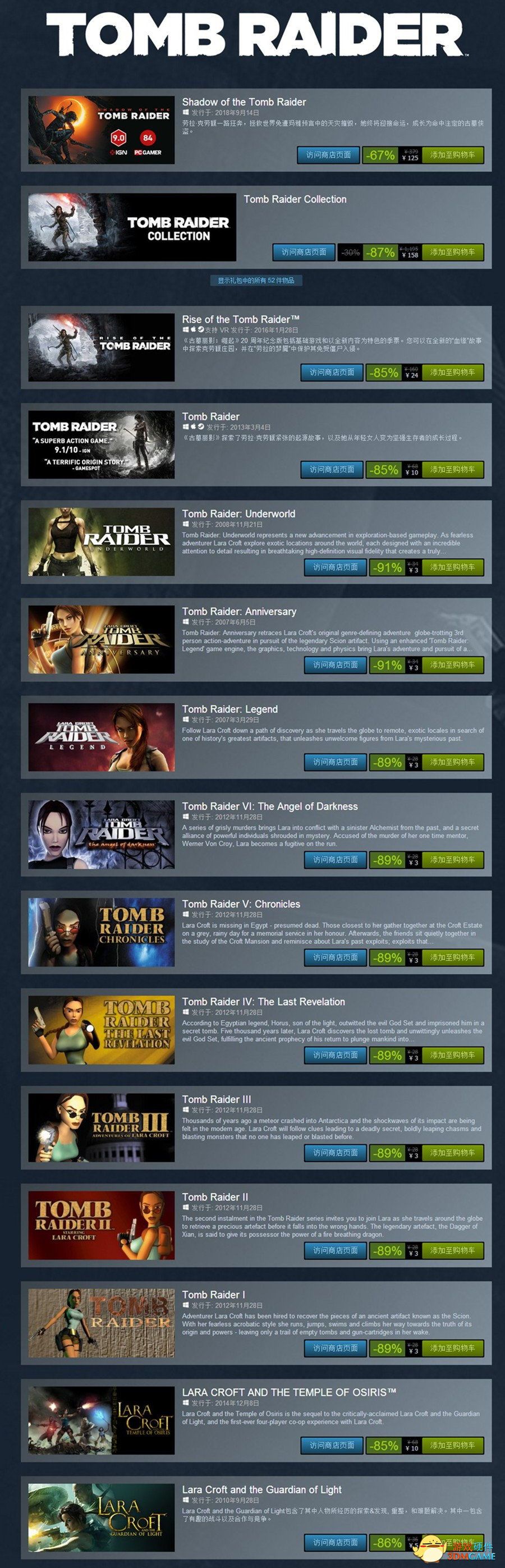 9月20日-27日,Steam平台开启了《古墓丽影》系列游戏巨幅促销,游戏最低只要3元即可到手。