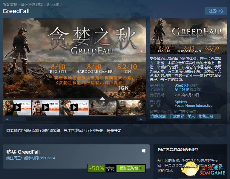《贪婪之秋》是一款由Spiders开发的角色扮演游戏。游戏的背景设定在带有一丝魔幻色彩的17世纪,画面上一股浓浓的巴洛克艺术风格。在游戏中玩家们将会前往一个新的岛屿开启自己的旅程,与玩家同行的还有其他的开拓者、佣兵和淘金者,但这块陌生的土地受到了魔法的眷顾,传言这背后拥有着大量早已被遗忘的秘密。而随着玩家旅途的深入,一系列神秘的事件也随之展开,在这片充满魔力、财富、未解之谜和奇异生物的土地上,玩家将塑造一个崭新的世界,并决定它的命运走向!