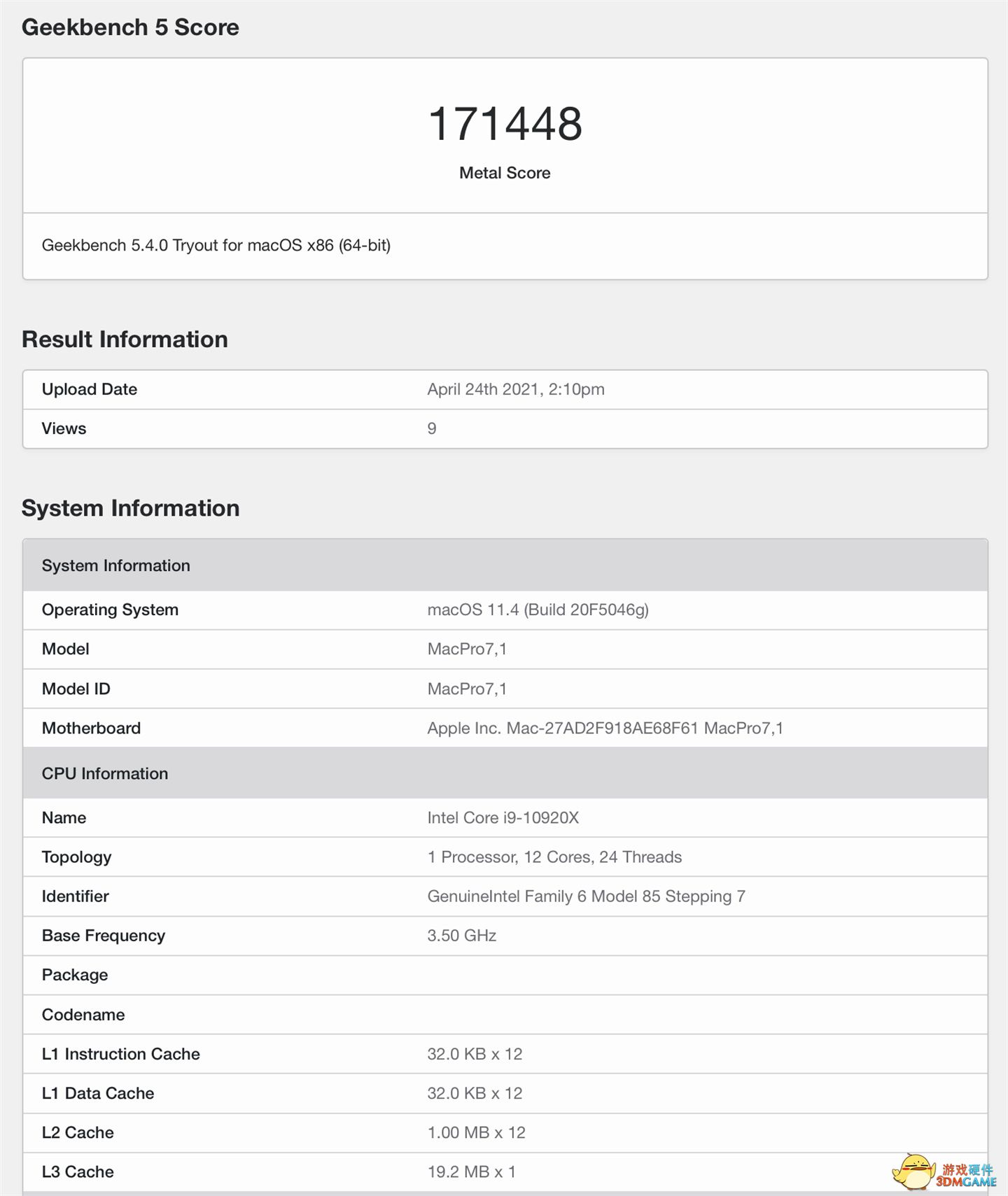 AMD Radeon Pro W6900X 的 Metal 跑分 171448, Radeon Pro Vega II 跑分 100971,提升 70%。