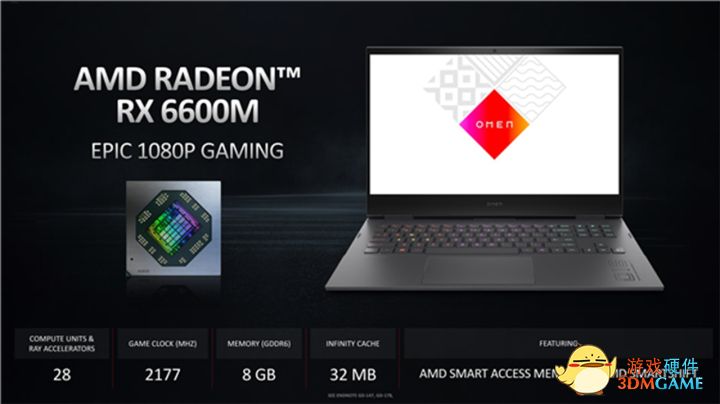 RX 6660M进一步精简到28个计算单元、1792个流处理器、28个计算单元、32MB无限缓存、8GB GDDR6显存,核心游戏频率2177MHz。它面向1080p主流游戏,可在诸多流行的3A游戏、网游中帧数可以保持在10帧0以上,竞品对标RTX 3060 6GB。