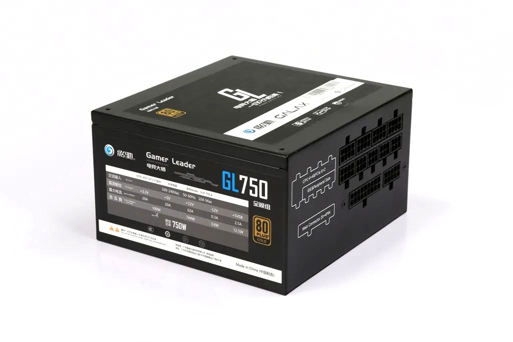 影驰 电竞大师 GL750W 电源,日系主电容,通过80Plus金牌认证,全模组线材设计;单路+12V输出设计,其中+12V输出最高62A电流,搭配12cm直径散热风扇,实现稳定强力供电。