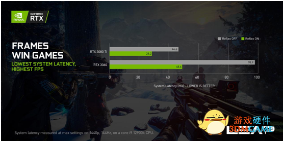 NVIDIA Reflex技术可降低系统延迟,提高玩家的竞争力,只需在游戏设置中开启NVIDIA Reflex,就能更快捕获目标,做出更快反应,并提高瞄准精度。Reflex是一项相对较新的NVIDIA技术,但已成为采用速度最快的技术之一,许多大型游戏中已集成该技术。