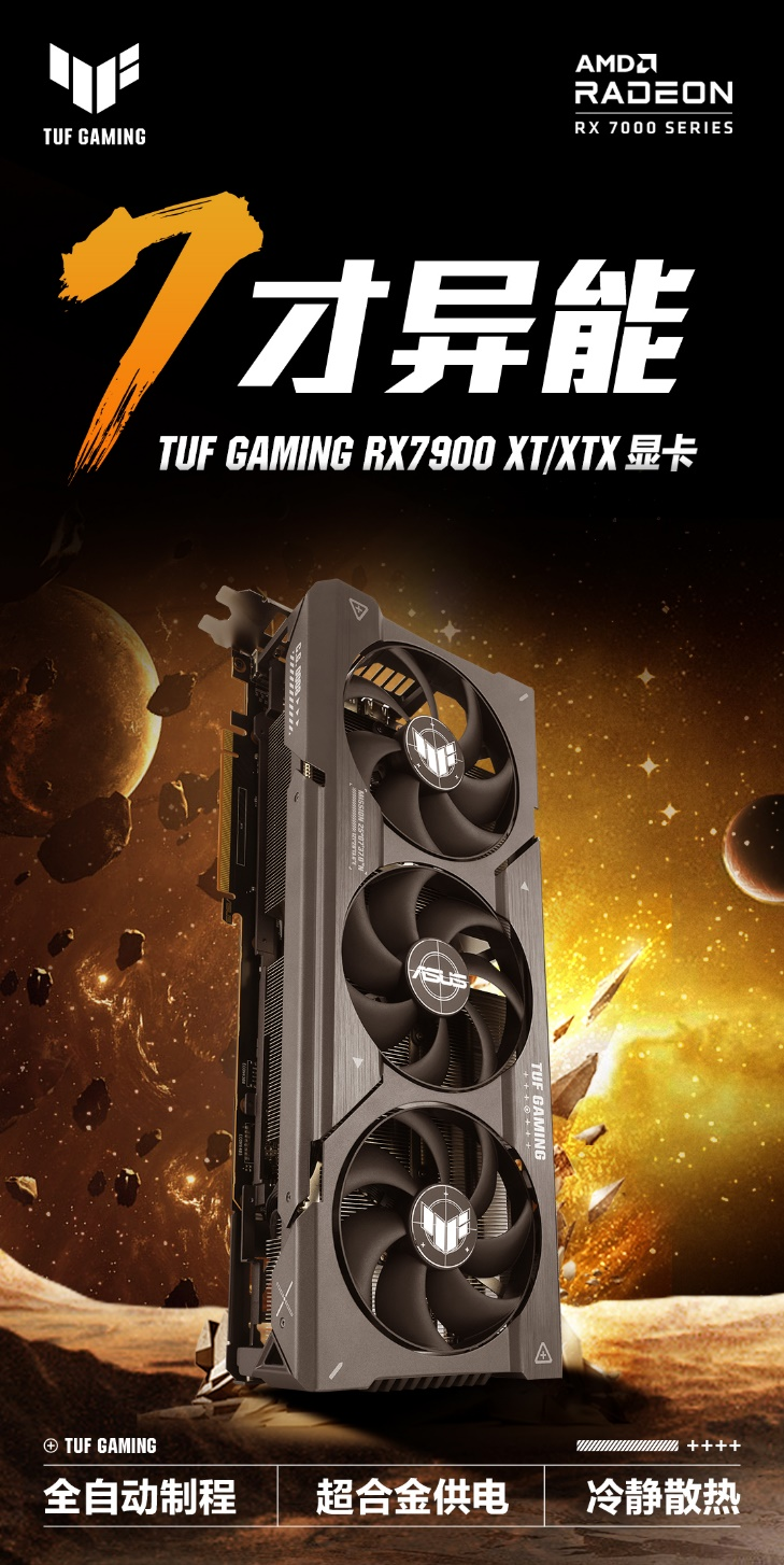 本月,华硕发布了全新TUF Gaming Radeon™ RX 7900 XT和Radeon RX 7900 XTX显卡,与上一代相比,新品显卡提供了更多的流处理器和更高的带宽内存接口,卓越的性能和能效将为电竞玩家提供高帧率4K和更高分辨率的游戏,“7”才异能助力新世代电竞玩家所向披靡!