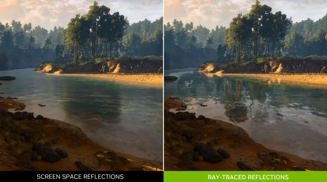 除此之外,在支持DLSS3技术的同时,《巫师3:狂猎》还新增了对NVIDIA RTX 全局光照的支持,在现实世界中,阳光会反射,从而增加附近表面和物体的亮度,物体表面的颜色属性会被吸收并添加到反射光中。在游戏中重现这种效果需要采用光线追踪技术,而通过添加NVIDIA RTX 全局光照,就能够利用高性能技术准确模拟光线的真实特性!