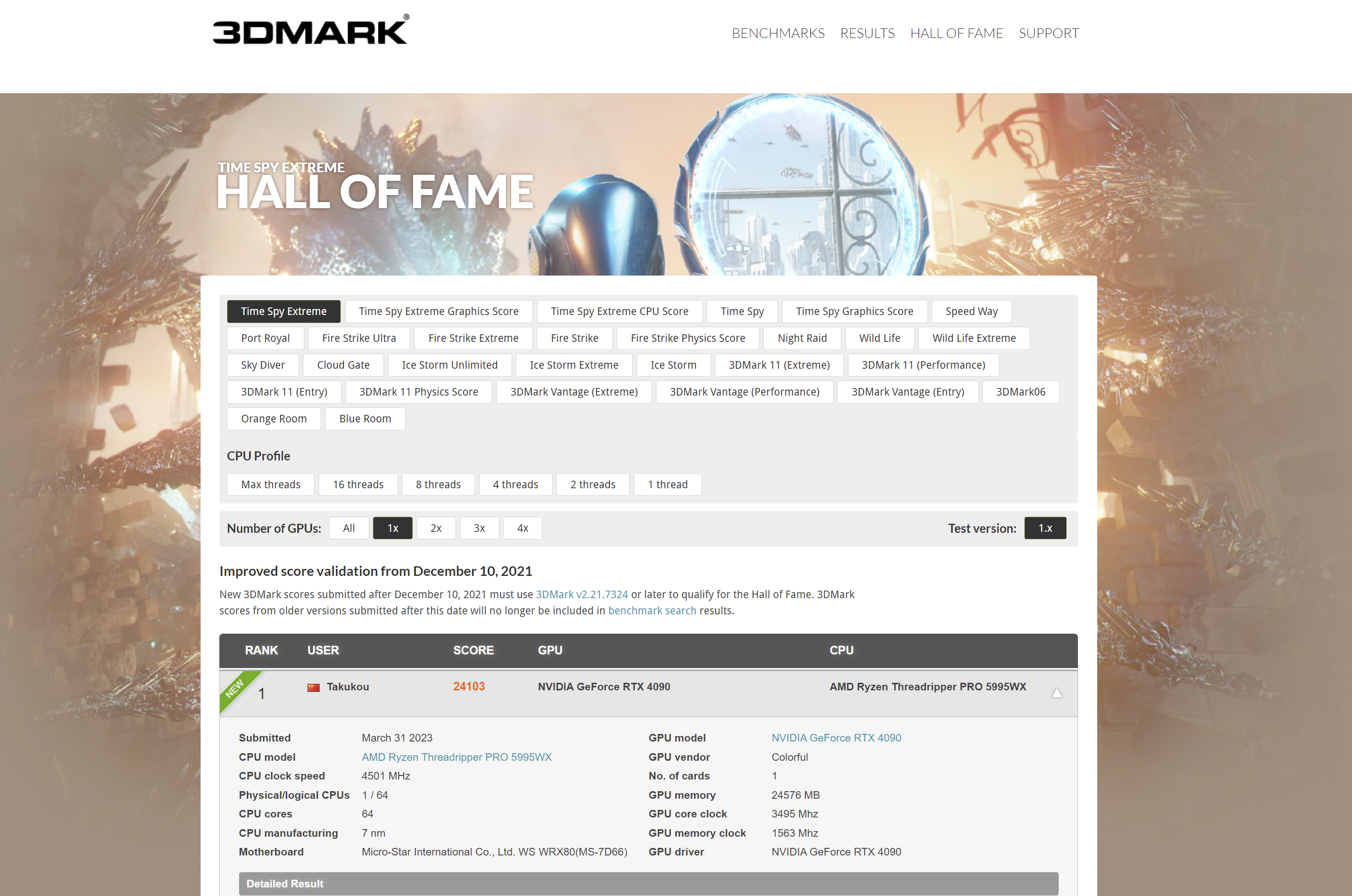 就在今日,iGame GeForce RTX 4090 Vulcan LAB单卡在3DMark的Time Spy Extreme项目中,以高达24103的分数成功拿下世界第一的王座,展现王者实力。