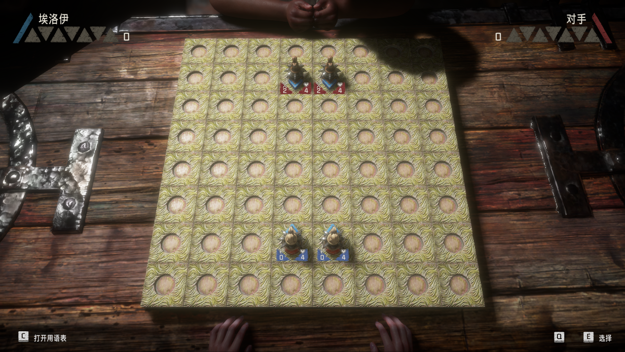 游戏内还可和NPC进行斗棋,简单来说,就是巫师三的昆特牌。每个对手都有自己的棋盘和玩法,你也可以从棋盘商人那购买棋子。比如钢背兽我就很喜欢,一招鲜吃遍天。
