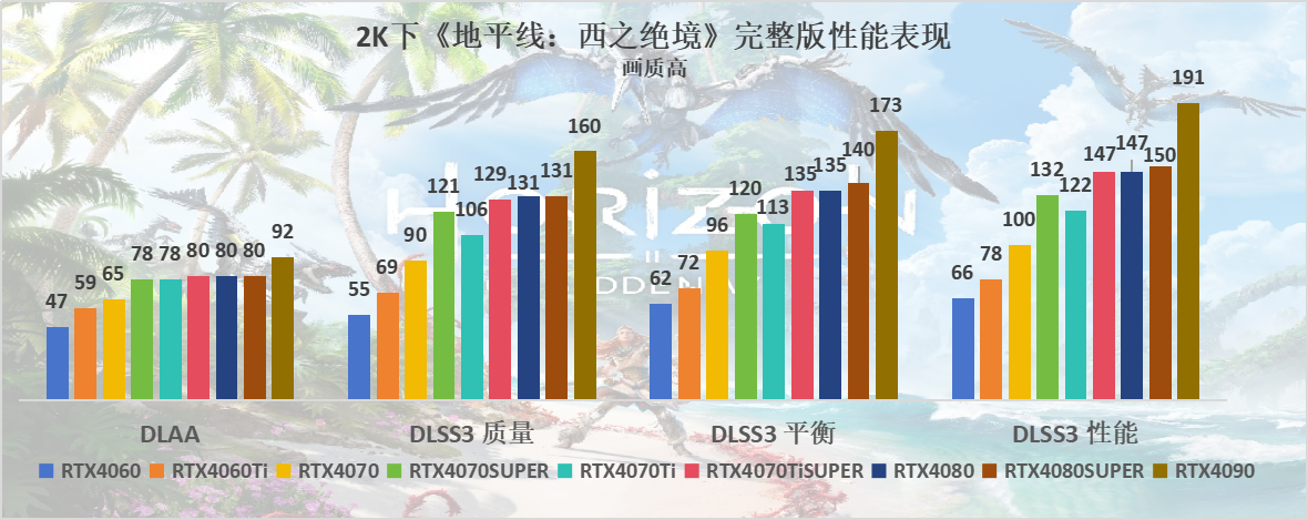在三月末PC玩家们可谓是狂喜,除了《龙之信条2》外,《地平线:西之绝境》完整版也在2024年3月21日从PS平台移植PC端并在steam发售。在移植到PC端后它也将支持NVIDIA的RTX技术,例如DLSS 3和NVIDIA Reflex。作为《地平线:零之曙光》的续作,其游戏质量自然不用担心,在2022年也荣获了最佳叙事奖,目前steam商店界面93%的好评。今天就让我们看一下这款游戏在移植入PC端后优化到底如何,我们也是使用了GeForce RTX 40系列的所有显卡来进行测试。