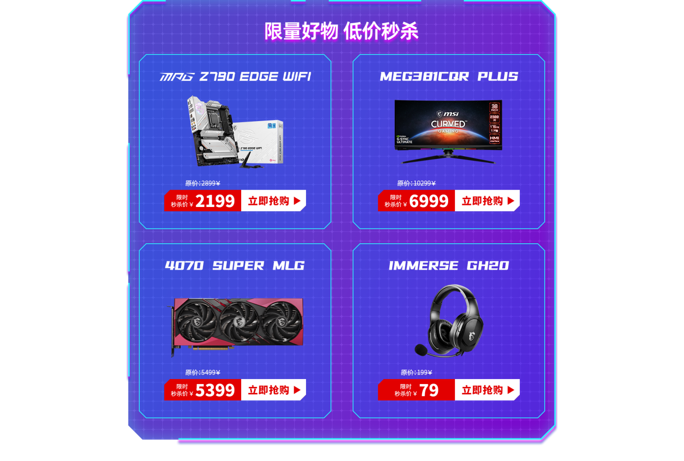 秒杀日程可见【微星商城】公众号