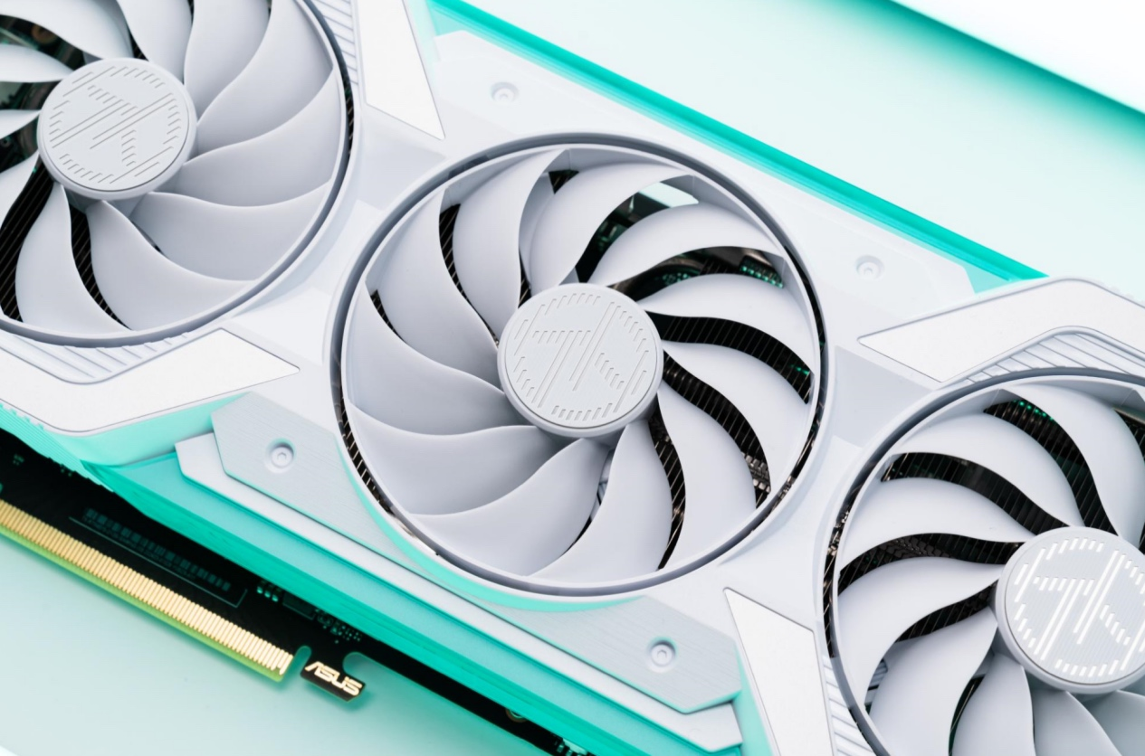 华硕天选TX GAMING RTX4060显卡,外观采用天选姬国朝IP形象,主色调为白色,显卡的正面和背面都印有冰蓝色和冰绿色的条纹,灵动洁白,外观性能双丰收!