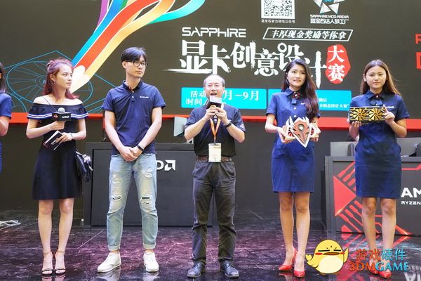 蓝宝石显卡产品经理Leo也在台上与现场观众分享了蓝宝石一以贯之的DIY理念和这次显卡创意设计大赛的初衷。LEO表示在在R300系列推出之时,蓝宝石显卡首创了一体化加固设计,让显卡的清理更便捷,让PCB也更牢固;RX400蓝宝石又导入快拆式风扇和定向导流技术,使得超白金系列显卡,用户体验和散热表现更上一层楼;今年RX500推出之际,蓝宝石超白金显卡再一次创新,推出了NITRO GEAR 套装,为全球玩家带来更多的DIY乐趣。结合蓝宝石NITRO GEAR的推出,此次显卡创意设计大赛就这样应运而生了。