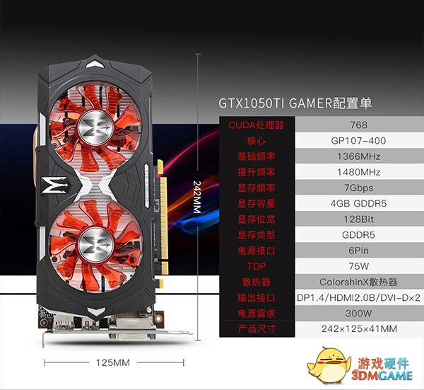 值得一提的是,整体尺寸只有242mm*125mm*41mm的影驰 GTX 1050Ti GAMER完美兼容各类小机箱,是MINI机箱DIY的装机首选。
