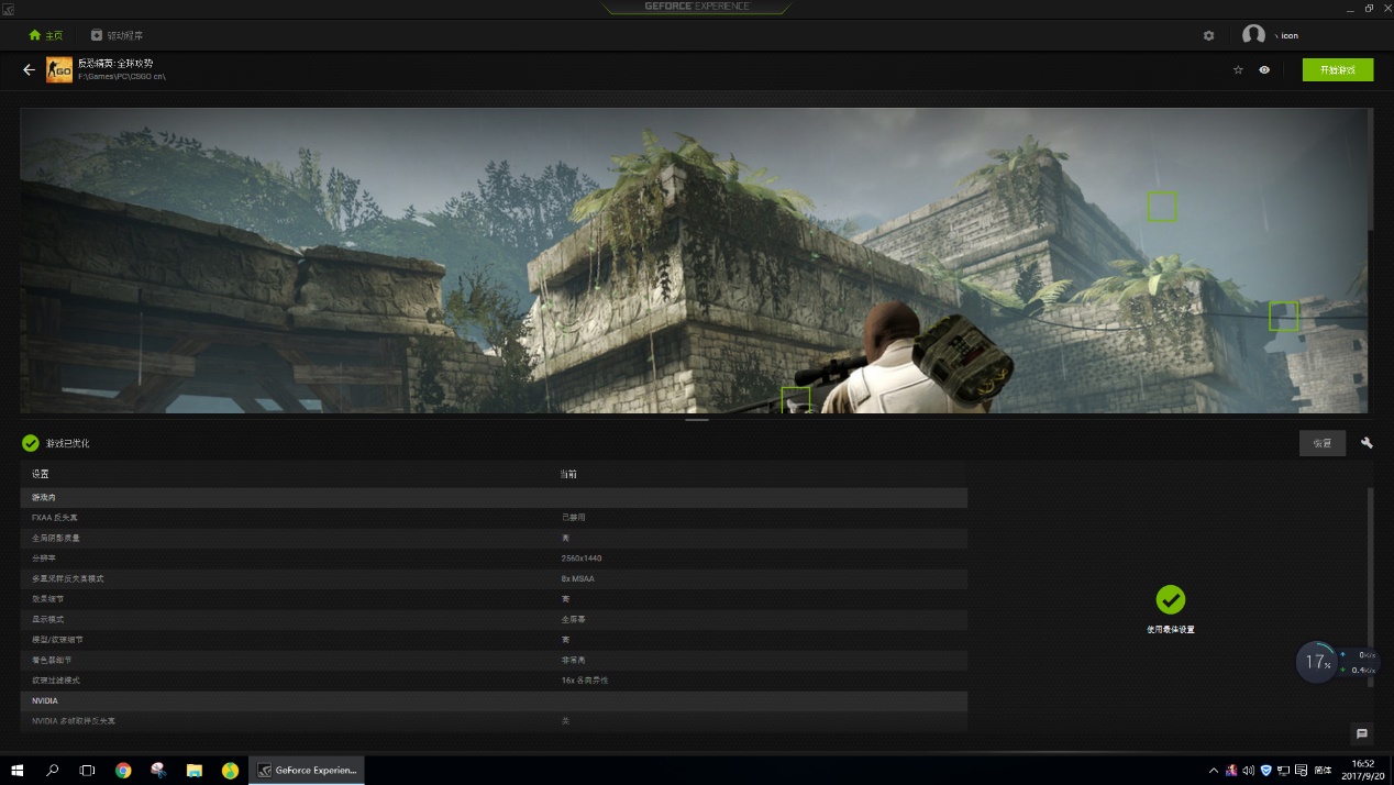 另外,在GeForce Experience内使用一键优化功能优化游戏内设置,并将游戏优化截图上传至新浪微博,添加#Shadowplay#话题@英伟达游戏 和@CSGO 更有机会获得GeForce GTX 1060 显卡,详细获奖方式请参阅英伟达官方微博。