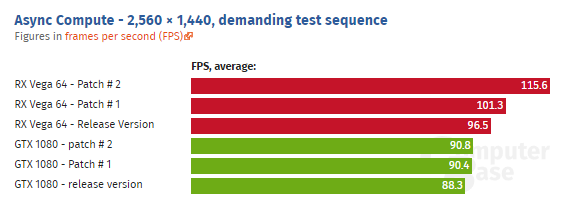 这款《德军总部2》最新补丁在发布中,表现得最为出色的地方是,AMD Radeon显卡尤其是Vega织女星系列,在游戏中表现得淋漓尽致,据报道性能提升了22%!这要归功于《德军总部2》的开发人员们对游戏所有方面的优化,并且特别强调了Vega的特性,并且是在游戏性能上提升最高的显卡,最新补丁肯定也会对其他显卡进行了性能的改进,但提升并不是很明显,例如NVIDIA帕斯卡家族只有3%的提升,而看到AMD北极星RX 500以及RX400系列却有10%的性能的提升。