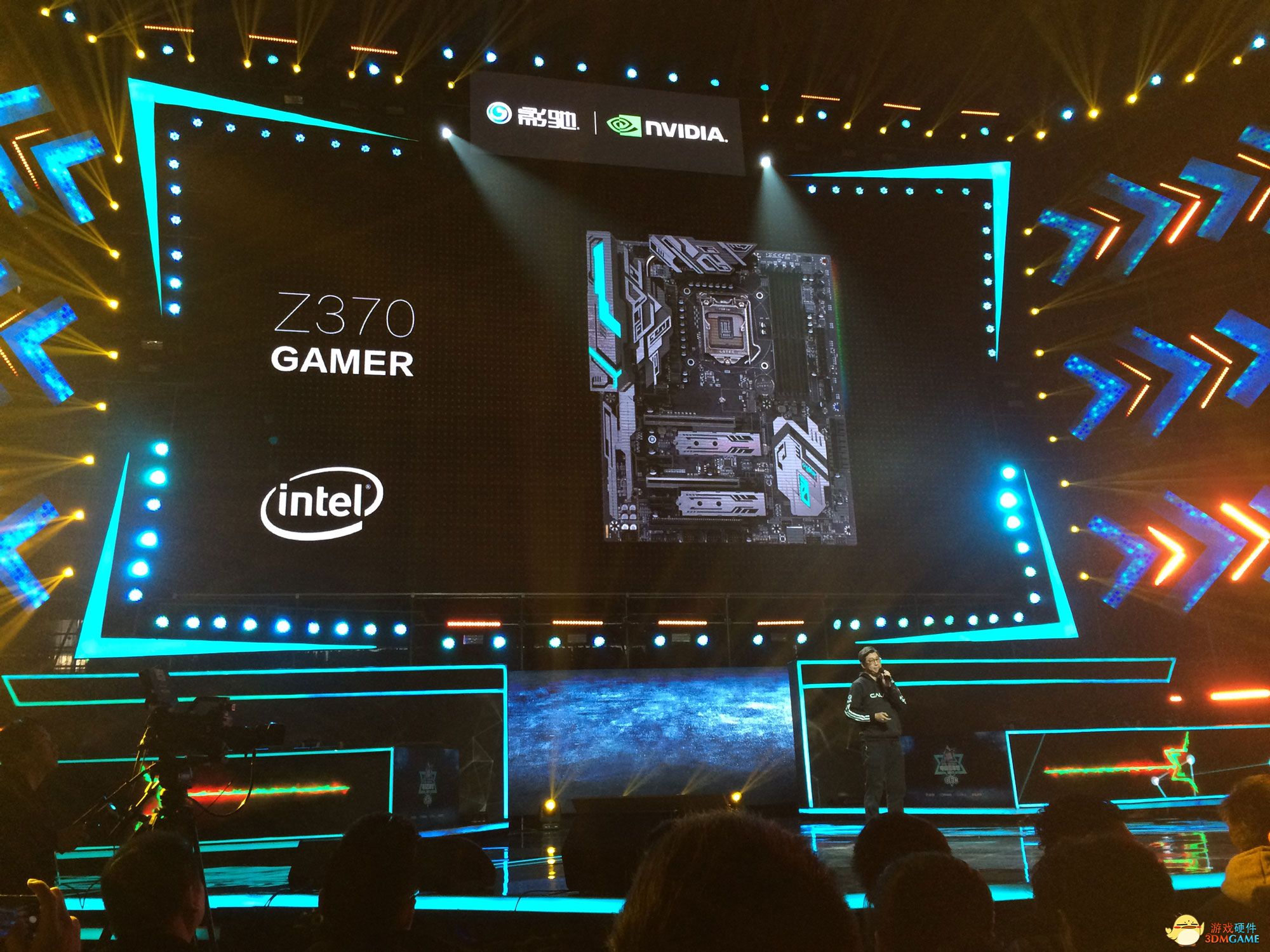 不过最引人注目的就是影驰产品墙中间的Z370主板了,我们都知道影驰目前是以显卡和存储产品作为自己的主营业务的,不过这一次爱创新的影驰终于正式踏入了主板领域,而在会场中展出的产品正是影驰Z370 Gamer,从供电和接口规模来看这块主板是定位于中高端领域,也让笔者不由得开始期待影驰后续产品线。