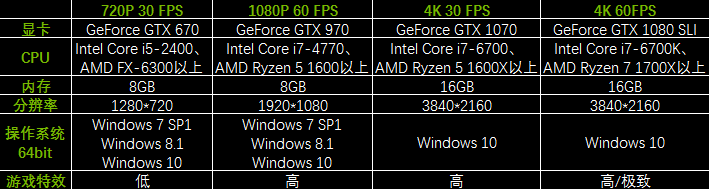 想以在4K分辨率下以高特效畅玩《孤岛危机5》的玩家,建议选择GeForce GTX 1070游戏显卡;而想以4K极致特效体验该游戏的玩家,我们建议您使用GeForce GTX 1080显卡搭建SLI高性能平台。