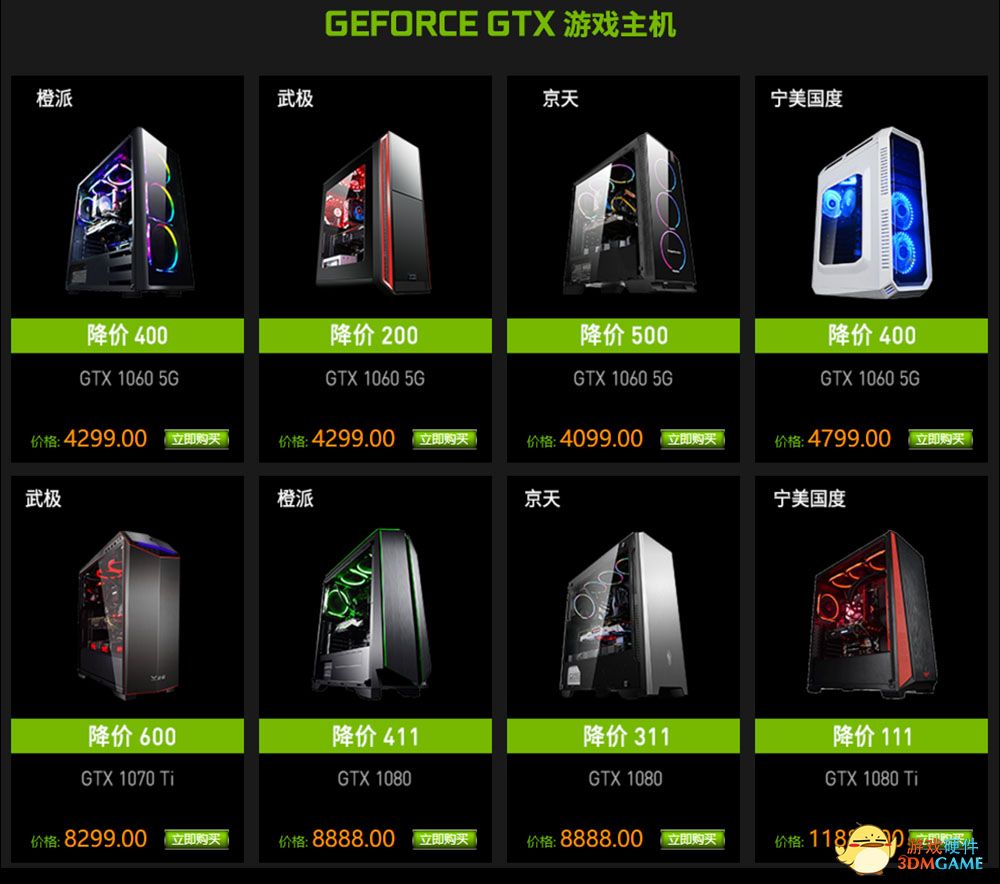 GeForce GTX 1080是GeForce GTX 10系列显卡的旗舰显卡,自推出以来一直深受玩家追捧,曾多次出现供不应求情况。现在该显卡库存充足,而且活动期间价格更加亲民,想体验高质量吃鸡的玩家建议购买。地表最强游戏性能卡皇——GeForce GTX 1080 Ti是目前市面上能以4K极高特效流畅运行《绝地求生》的唯一单卡,现在也优惠300元进行促销。