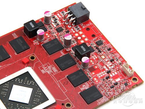 这款HD7770显卡的PCB显得比较修长,不过从PCB不少的空白布局上看,除了HD7770的28nm低功耗制程外,双风扇的散热就是导致这种设计的原因。