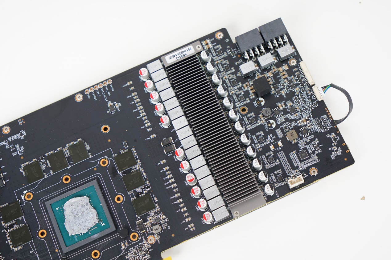 要说豪华用料,冠军自然非索泰莫属,相信第一次见到索泰高端显卡拆解的玩家一定会吓一跳,整个PCB板数量庞大的电容和电感整整齐齐的排列在右侧,看着这怪兽般的16+2相豪华供电,有一种强迫症被治愈的感觉,通过强大的供电设计也增强了显卡带负载能力,有效降低输出电流纹波,保证显卡超频稳定性,并可有效延长显卡使用寿命。