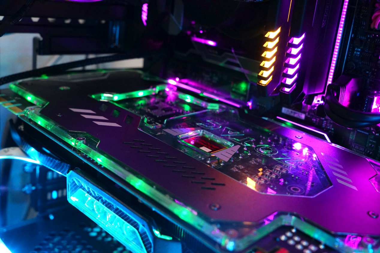在灯光调节部分,我们可以看到FireStorm从显卡背板到显卡正面均支持玩家随意调节,且灯光效果十分丰富,下面就是笔者搭配技嘉Z370主板手动调节的几种灯效。
