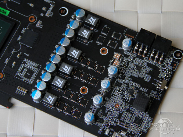 PCB的布局方面采用了最常见的方式,供电部分集中在显卡的尾部,而核心和显存集中分布在显卡的中部。