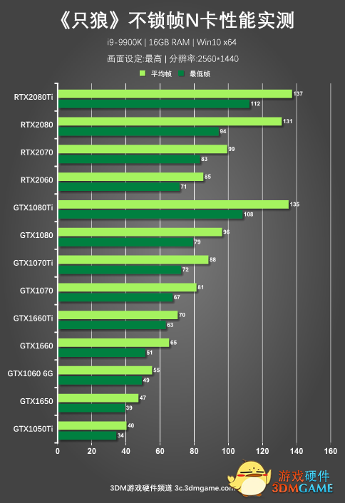 《只狼》游戏默认锁定60帧,为更好的展现各个显卡间的性能差异,我们使用来自外国论坛的帧数解锁软件,下面是所有显卡在三档分辨率下的测试成绩。