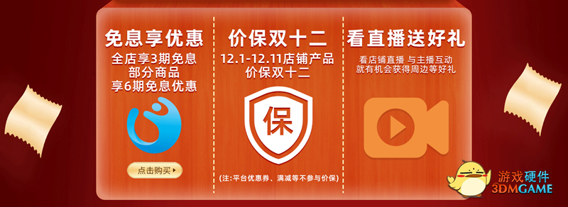 除此之外,还有免息福利,全店商品享受3期免息活动,部分商品还可享受6期免息,且在双十二活动期间,店铺商品均享受产品保价;当然,店铺的日常直播活动也会在双十二定期举办,与主播互动,将有机会获得精美周边好礼。