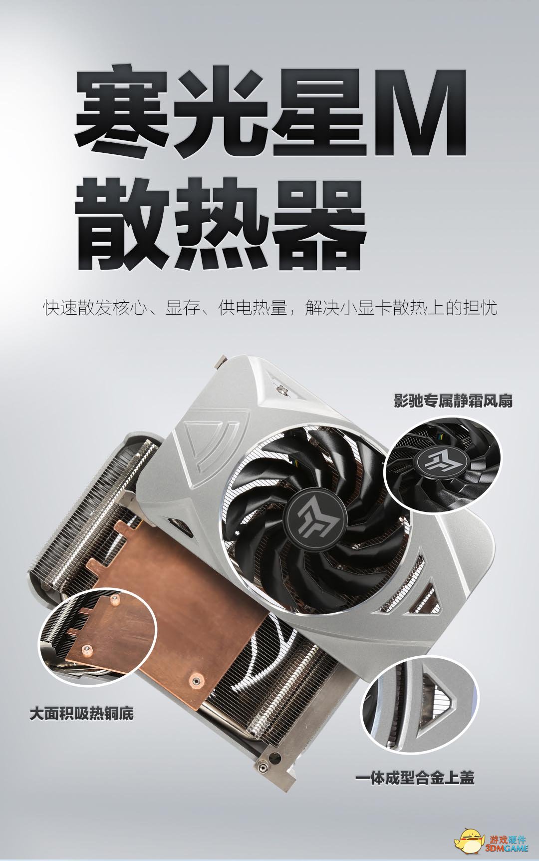 4、金属大师Mini采用寒光星M散热器,带走核心与显存产生的热量,将显卡满载时的温度维持在健康的水准。