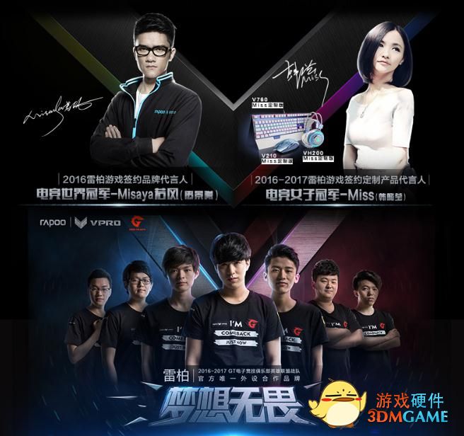 与腾讯相同眼光的是,2016年更是加足马力,一举签约电竞女子冠军Miss(韩懿莹)为定制产品代言人,推出定制款产品;签约电竞世界冠军Misaya若风(禹景曦)为品牌代言人,推广中国电竞事业;签约英雄联盟GT战队,成为官方唯一合作外设品牌,并肩征战LPL。赞助电竞学院FFF,关注电竞人才成长计划。不仅深入到电竞各个环节为产品增色,更在电竞行业持续发力,为发展电竞事业做出了巨大努力。