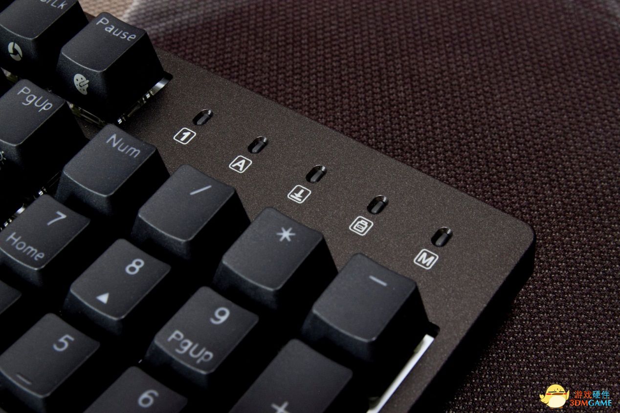 ▲有意思的是,杜伽Taurus 310 Nebula有五个灯位设计,左到右依次分别为小键盘指示灯,大写锁定键、Scroll Lock指示灯、Win键锁定灯和自定义配置文件调用指示灯。而最后这个自定义配置文件指示灯目前只能通过驱动来调整,但可保存在键盘脱离驱动使用,有需要的朋友可以了解了解。