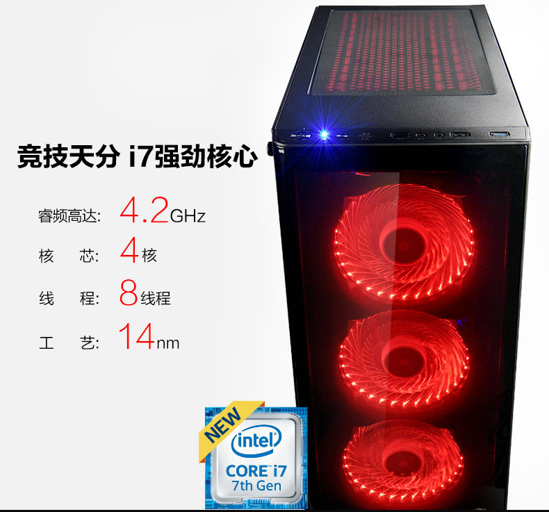 这款搭载了英特尔酷睿i7的主机全名称为:宁美国度i7 7700/RX580游戏台式电脑主机,售价为4899元,目前仅在天猫独家预售。