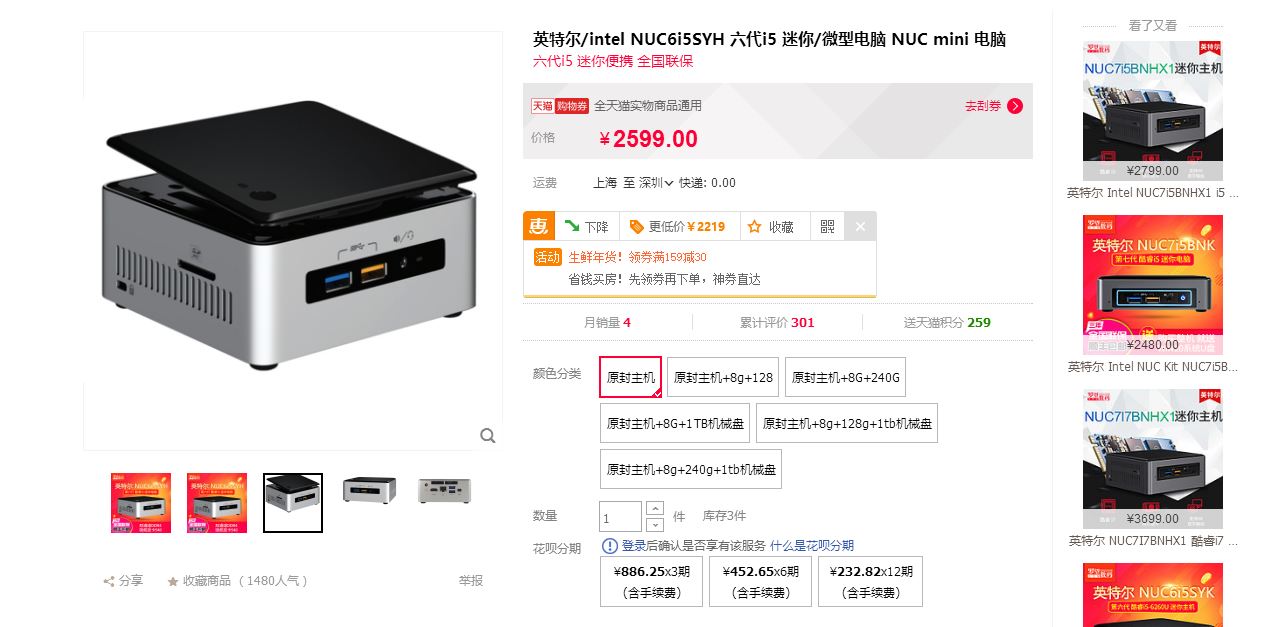 笔者大概找了下,NUC现在的旧款,价格都在2600左右,从价格上就可以猜出,新款NUC大概价格会是3000左右。