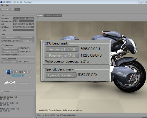 如果说Cinebench R10的测试是为了形成标准更便于对比,那么Cinebench R11的加入则是PConline评测室的逐渐过渡,该版本的测试程序更能够榨干系统的最后一点性能,而fps与pts的单位更加直观也更能使普通用户理解(fps帧数单位、pts点数单位)。