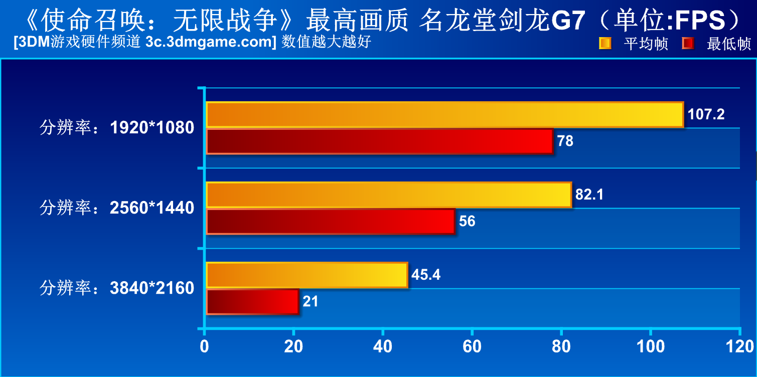 而就结果而言,剑龙G7在1080P分辨率下还是能轻松HOLD住的,到了2K分辨率虽然最低帧会偶尔跌破60,但平均帧数可达82,整体流程依旧流畅。当然,由于该作游戏优化问题,所以型号的卡都普遍掉帧严重,如果遇到更复杂的场景,帧数可能还会有波动,因此在2K分辨率下最佳选择是将抗锯齿等对游戏影响不大的特效调低以获得更流畅的游戏体验。