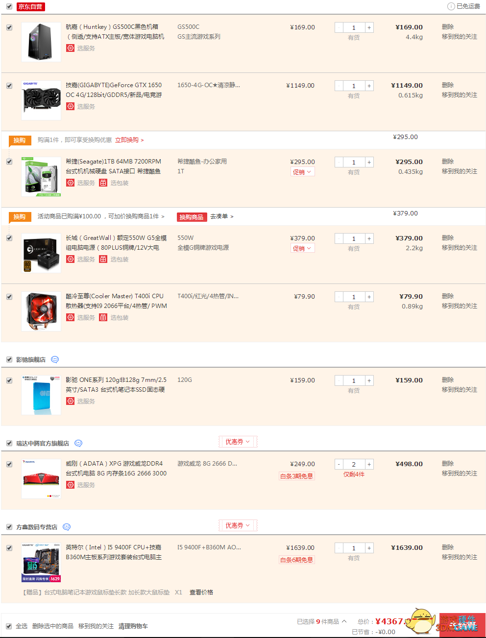 这套配置方案以京东商城目前的价格最终到手为4367元。这样的配置可以应付主流的网游以1080p分辨率下流畅玩,而在《狙击精英V2重制版》中甚至可以以4K分辨率下流畅运行。
