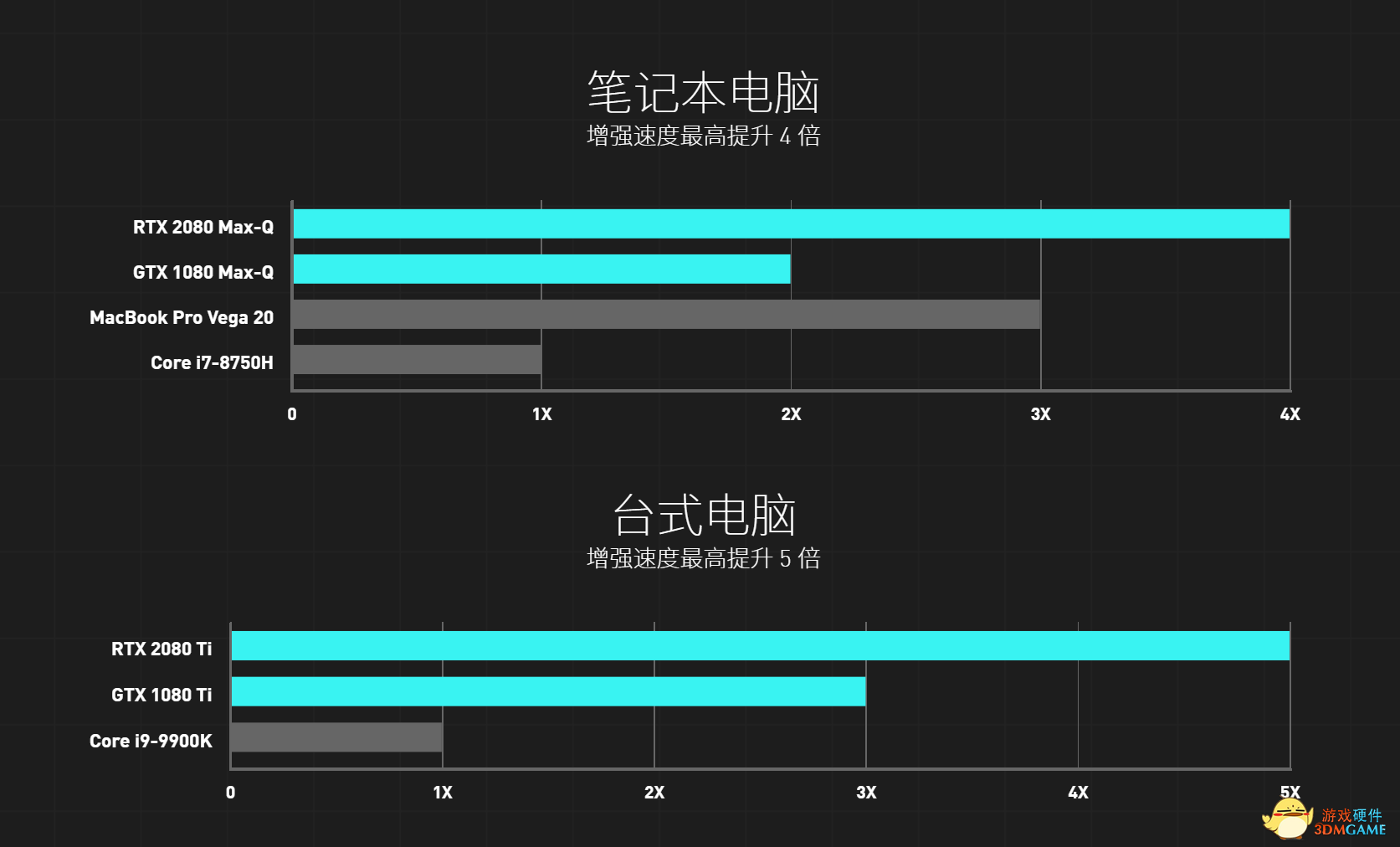 从对比的情况可以看出,GPU在创作软件的实际工作表现上相比CPU存在更大的优势,而Turing™架构的GPU则更明显。这是因为Turing™架构对后期、影视、建模等软件有着特定的优化,这也与其核心组成有关,如在一些需要场景模型、特效渲染、图像精度细节编辑等应用场景时,Studio可通过调用RT Core来针对性的处理对图像所需要的大量资源进行运算;在一些机器学习、智能降噪等场景则利用Tensor Core的AI性能来实现。