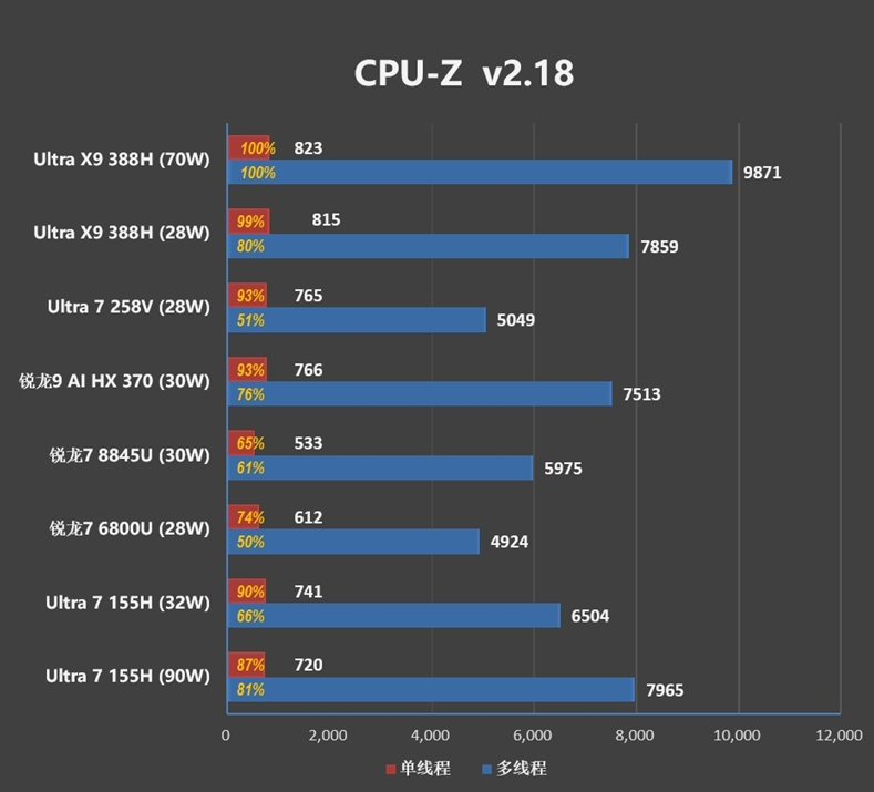 - CPU-Z跑分:单核823分,多核9871分