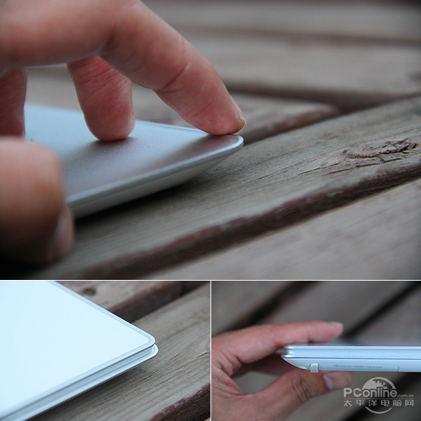 有趣的是,本机的键盘面要比顶盖突出一些,有一种“地包天”的感觉,为什么采用这样的设计我们不得而知,但是谁又规定笔记本的键盘面必须要比顶盖小呢?这虽然算不上什么突破性的设计,但这种勇于打破常规的精神还是值得肯定的。Aspire S7在细节的设计上有着更为偏执的追求,每一个端角过度都进行过精心的修饰,越是一些容易忽视的地方,越是能看出一些端倪。