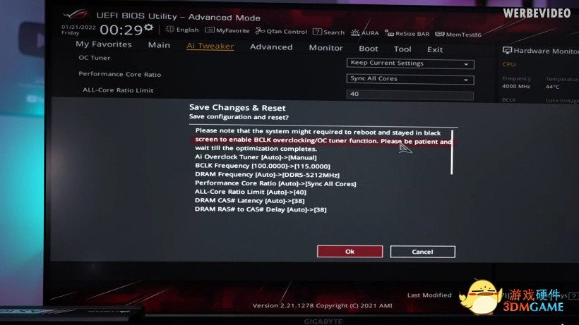 B660 主板的 BIOS 与 Z690 有所不同,没有直观的 BCLK OC 选项,需要手动进行设置。在设置完成之后,首次开机可能需要 1 分钟以上,需要耐心等待。
