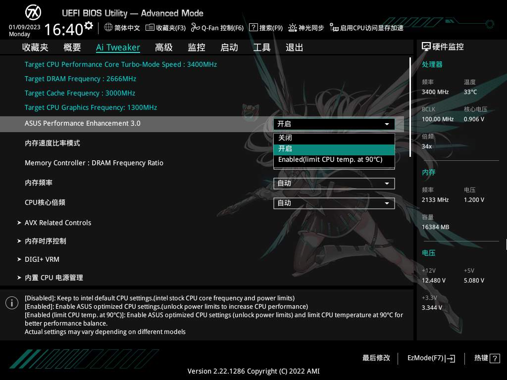 华硕B760天选主板在出众颜值下蕴藏爆表战力。采用12+1供电模组及用料扎实的DrMOS,搭配8+4 Pin ProCool高强度供电接口和2盎司铜6层PCB,充分释放13代酷睿处理器的强大战力。还加入了APE 3.0(ASUS Performance Enhancement 3.0)功能,在BIOS中开启后即可一键解锁处理器功耗,提供更强的处理器性能释放。考虑到新酷睿处理器功耗设计,华硕还贴心地加入了温度墙为90℃的解锁模式(此模式下性能释放会高于默认设置,略低于完全解锁模式),玩家可以根据自己主机的散热条件和使用需求来酌情选择。