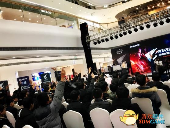 在现场,电竞主持人骆歆同学及电竞说书人 Vocal与观众进行互动,分享了他们使用AORUS 主机的游戏体验,对无法到达现场的游戏玩家在熊猫TV全程进行直播。