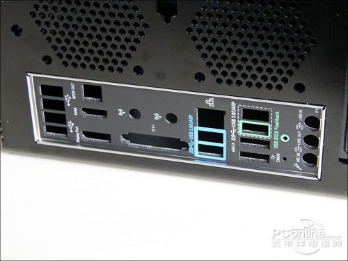 主板提供极其丰富的I/O接口,包括4个USB2.0、HDMI+DP+DVI数字视频输出、RJ-45网线接口、4个错分布置的USB3.0、2个E-SATA、6声道音频和光纤音频接口。