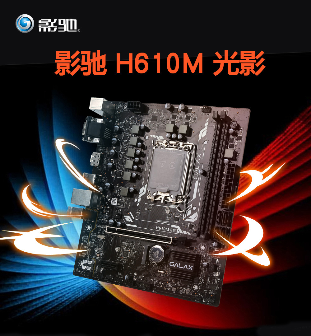 影驰 H610M 光影主板现已上架至天猫影驰电脑硬件旗舰店,另有H610M 光影搭配I5-12400F CPU板U套装,价格低至1799,欢迎选购。